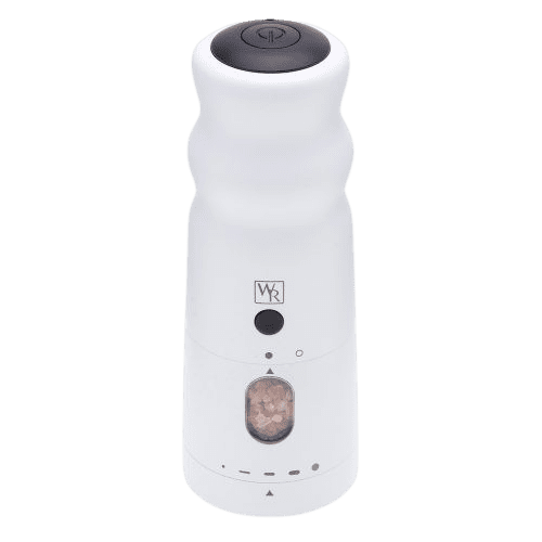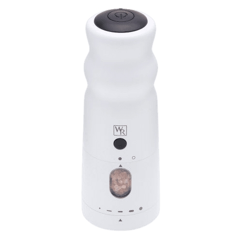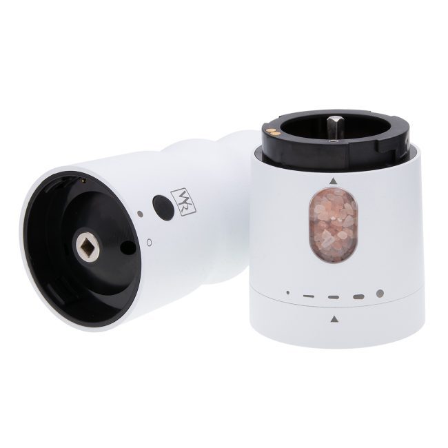 With all the features of the Black Rain pepper mill, White Rain will dispense freshly-ground salt, from powder-fine to quite coarse, with one hand. White Rain makes salt grinding as easy as pushing a button.